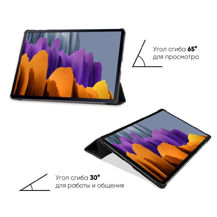 Чохол AIRON Premium для Samsung Galaxy TAB S7 Plus t970/975 із захисною плівкою та серветкою Black Надійний чохол із міцними пластиковими вставками від компанії AIRON для планшета Samsung Galaxy TAB S7 Plus t970/975 стане незамінним аксесуаром для вашого планшета. Для зручної та комфортної роботи, навчання, перегляду фільмів та використання різних програм ідеально підходить доповнення до вашого Samsung Galaxy TAB S7 Plus t970/975. Якісний та стильний чохол-обкладинка із захисною плівкою на екран зможе захистити ваш електронний девайс від непотрібного впливу зовнішнього середовища: легких механічних пошкоджень, подряпин від нігтів, ключів, канцелярії. Внутрішнє покриття обкладинки – це м'яка мікрофібра. Вона здатна очищати поверхню екрана від відбитків пальців та дрібних забруднень. До того ж, у комплекті із чохлом AIRON Premium ви отримуєте у подарунок серветку з мікрофібри. Завдяки їй у вас вдасться очищати поверхню екрану Samsung Galaxy TAB S7 Plus t970/975 до блискучого вигляду. Матеріал аксесуара приємний на дотик, щоб вам було максимально комфортно та зручно використати його. Аксесуар також дозволяє планшету виконувати функцію автоматичного засипання та пробудження. Достатньо вам відкрити кришку обкладинки, як екран спалахує, закриваєте – і він згасає, переходячи в режим очікування. Роз'єми та отвори на обкладинці від AIRON повністю відповідають планшету, так що у вас не виникне проблем із підключенням інших девайсів, зміною гучності або створенням фото та відео. Спеціальний поділ обкладинки на кілька зон дозволяє використовувати її навіть як підставку. Ви можете вибирати кут підставки 65° для перегляду фільмів та 30° для роботи.