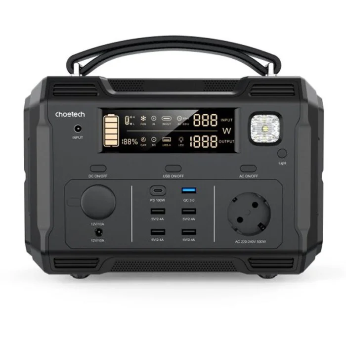 Компанія Choetech створила для вас спосіб ніколи не розряджати акумулятор і завжди залишатися на зв’язку. Наша портативна електростанція потужністю 500 Вт використовує чисту синусоїдальну технологію, яка безпечно живить електронні пристрої та забезпечує безперебійну електрику, таку ж надійну та безпечну, як електроенергія, яку ви отримуєте вдома від мережі. Оснащена всіма необхідними портами для заряджання ваших пристроїв та приладів, а також зручною шкіряною ручкою.