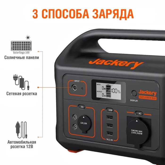 Велика ємність 518 Втч: Explorer 500 оснащений літій-іонним акумулятором ємністю 518 Втч (24 Ач, 21,6 В). Він має 1* вихід змінного струму (230 В/500 Вт, пікова потужність 1000 Вт), 3* порти USB-A, 2* порти постійного струму та 1* автомобільний роз’єм для підключення багатьох пристроїв, таких як міні-холодильник, повітряний насос і телевізор із чистою синусоїдою для роботи. інвертор. Легко брати із собою: електростанція Explorer 500 розміром з баскетбольний м’яч і важить лише 6,4 кг. Вбудована міцна ручка полегшує перенесення. Компактний дизайн дозволяє Explorer 500 надійно супроводжувати вас у походах, поїздках на колесах та у багатьох інших випадках. Гнучкі можливості заряджання: Explorer 500 оснащений вбудованим контролером заряду MPPT для максимальної ефективності заряджання та може бути легко заряджений сонячною панеллю SolarSaga 100 (продається окремо) для забезпечення екологічно чистої та чистої енергії. Також доступні інші гнучкі варіанти заряджання: через адаптер змінного струму або автомобільний зарядний кабель.
