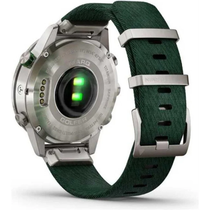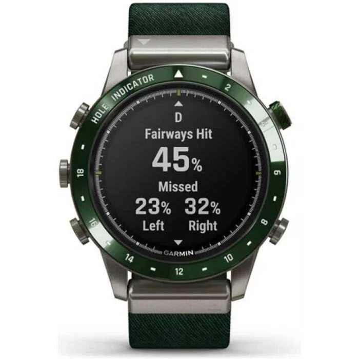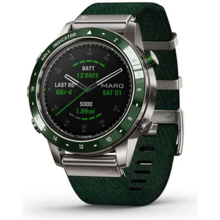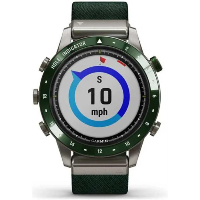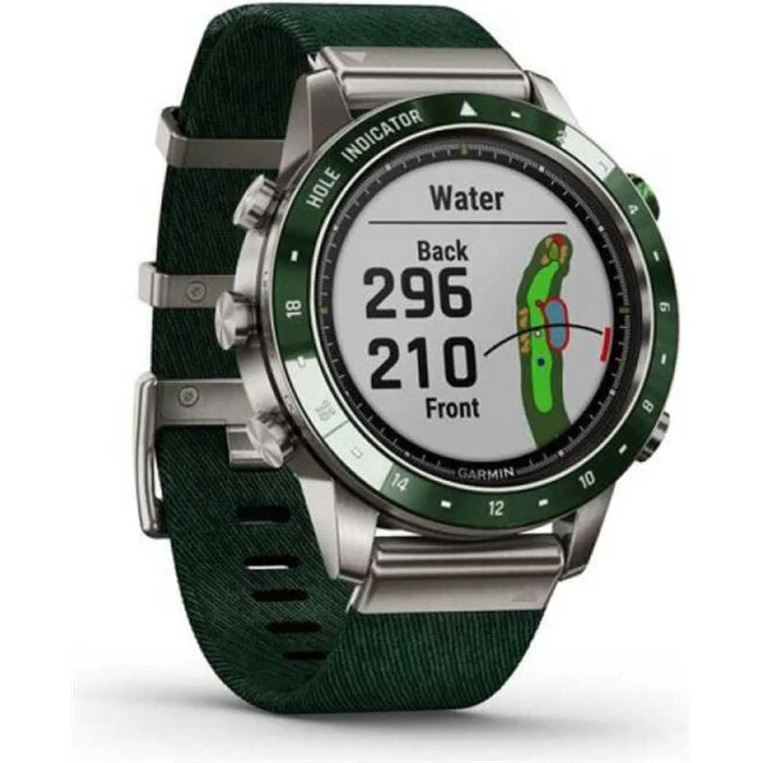 Marq Golfer показує вашу пристрасть до гри. Це єдині сучасні наручний годинник з інтелектуальними функціями, більш як 41 000 попередньо завантажених полів для гольфу і найсучаснішими даними для відстеження ігор. Нехай інші дізнаються, що ви живете заради гри з цими розкішними розумними годинами, які забезпечені куполоподібної сапфіровою лінзою, завжди включеним дисплеєм і 18 спеціально відштампованими відмітками отворів прямо на лицьовій панелі. Гідні матеріали Знайдіть свій годинник з дизайном, розробленим для гри, включаючи керамічний безель 46 мм, нейлоновий ремінець з трітонового зеленого жаккардового плетіння і втоплені кріплення, яке ніколи не завадить грі. Віртуальна CADDY Отримайте допомогу кедді прямо на вашому зап'ясті. Віртуальний кедді враховує швидкість і напрям вітру і пропонує поле в залежності від відстані, яку ви зазвичай робите з цим конкретним клубом. Швидкість вітру і напрямок Годинник показує швидкість вітру і напрямок, що значно спрощує визначення того, який ключкою користуватися і в якому напрямку грати. 41 000 пропонованих полів Ваші годинник поставляється з попередньо встановленою більш 41000 повнокольорових courseview карт полів для гольфу з усього світу. Завантажте оновлення для поля, на якому ви граєте найчастіше. Вид небезпеки Ця функція дозволяє швидко прокручувати кожну небезпеку на карті і отримувати інформацію про критичні відстанях, щоб ви знали, чого слід уникати. Відстеження поля З'єднайте ваш годинник з включеними датчиками трекінгу поля approach® ct10 для більш просунутих можливостей трекінгу, включаючи розташування, відстані і тип поля. Playslike distance Функція playslike distance регулює ярди для обліку ударів в гору. Зелений вид Функція green view дає вам справжню форму кожного поля, де б ви не знаходилися, і дозволяє вам переміщати шпильку для більшої точності. Швидко наведіть курсор на передню, середню і задню частину зеленого кольору, щоб ви могли зробити потрібний постріл. Pinpointer Навіть при сліпих знімках функція PinPointer повідомить вам напрямок шпильки, щоб ви могли максимально використовувати кожен розмах. Більше статистики Спільно з додатком Garmin Golf для аналізу отриманих ударів, участі в таблицях лідерів і турнірах, а також для отримання додаткових відомостей про вашу гру. Стрес рахунок Контролюйте частоту серцевих скорочень на зап'ясті, а також мінливість частоти серцевих скорочень, щоб розрахувати показник стресу. Додатки та діяльність Попередньо улюблені програми і попередньо завантажені профілі активності призначені для бігу, плавання, їзди на велосипеді, походів, катання на човнах, катання на лижах і багато чого іншого. Датчик дуги імпульсу Порадьтеся з pulse ox, щоб зрозуміти, наскільки хороший рівень кисню в вашому тілі пристосовуються до розрідженого повітря на великих висотах. Відстеження дихання Подивіться, як ви дихаєте протягом дня, під час сну, під час роботи з диханням і занять йогою. Відстеження гідратації Залишатися гідратованим важливо для вашого благополуччя. Зареєструйте своє щоденне споживання води, щоб допомогти вам уникнути зневоднення і побачити, наскільки ви здорові день у день. Backcountry ski input Профіль цього може розрізняти катання на лижах і скелелазіння, а потім показує показники, специфічні для підйому або спуску. Датчики ABC Пройдіть по певному маршруту з допомогою датчиків ABC, включаючи висот