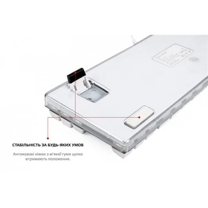 За будь-яких умов, клавіатура на своєму місті завдяки протиковзким ніжкам з м’якої гуми.