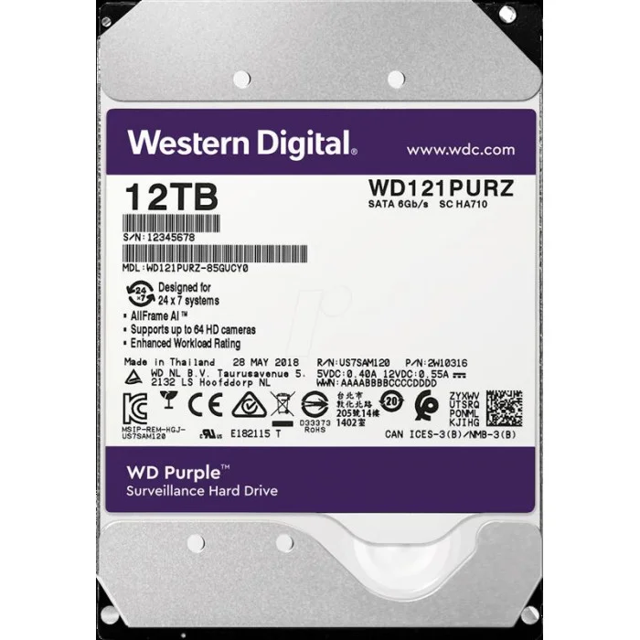 Накопичувач HDD SATA 12.0TB WD Purple 7200rpm 256MB (WD121PURZ)
