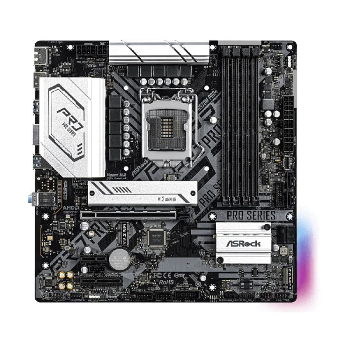 Підтримка 10th-е покоління Intel Core і 11th-е покоління Intel Core. 8 Phase Power Design. Підтримка DDR4 4800МГц (OC). 1 x PCIe 4.0 x16, 1 x PCIe 3.0 x4, 1 x PCIe 3.0 x1, 1 x M.2 Key-E для підтримки WiFi. Пристрій графічного виведення даних: HDMI, DisplayPort. 7.1-канальний HD-кодек (Realtek ALC897 Audio Codec), Nahimic Audio. 4 SATA3, 1 x Hyper M.2 (PCIe Gen4 x4), 1 x Ultra M.2 (PCIe Gen3 x4 & SATA3). 2 x Rear USB 3.2 Gen2 (10Gb / s), 9 x USB 3.2 Gen1 (4 x Rear, 4 x Front, 1 x фронтальний Type-C). 4 x Front USB 2.0. Intel Gigabit LAN. ASRock Polychrome SYNC.