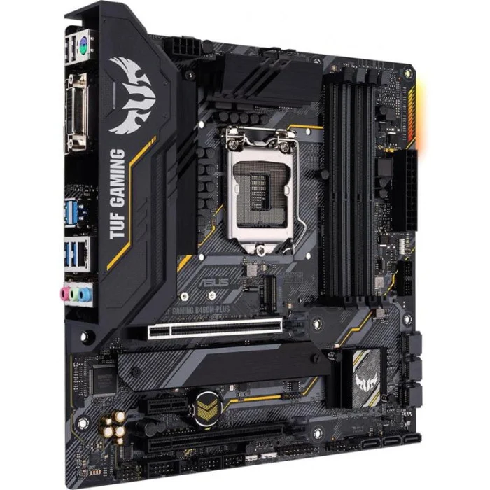 Asus TUF GAMING B460M-PLUS - материнська плата ігрового класу. Пропонує високий клас захисту і надійності, адже відповідає стандартам TUF. Спрощує підбір компонентів, так як сумісна з сучасними процесорами, пам'яттю DDR4, а також приверне увагу до системи підсвічуванням RGB Aura Sync.