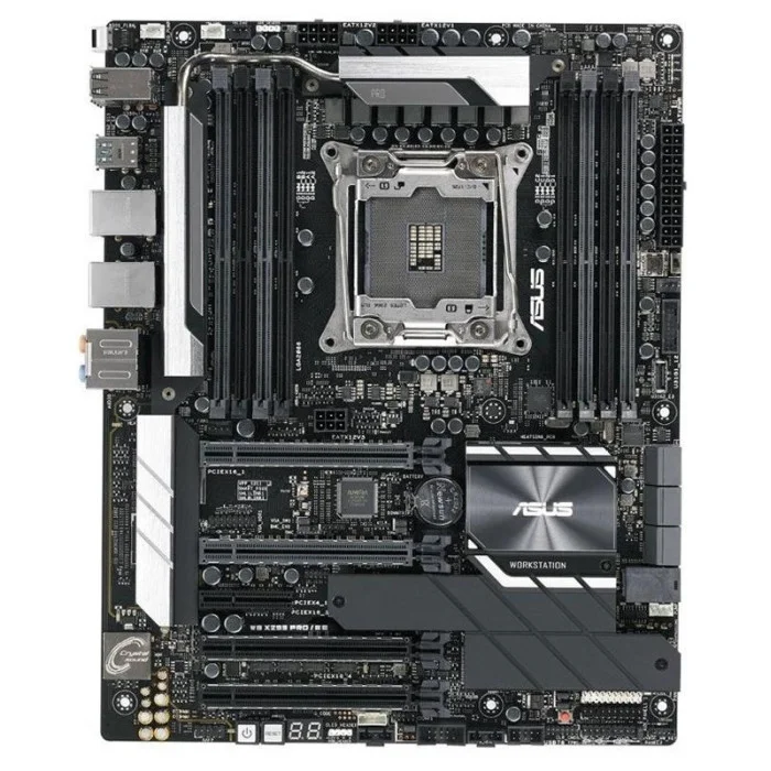 Повноцінне рішення для управління ІТ-інфраструктурою Материнська плата WS X299 PRO/SE пропонує потужні засоби віддаленого адміністрування у вигляді вбудованого BMC-контролера і програмного забезпечення ASUS Control Center. Вони будуть ефективні в рамках комп"ютерної інфраструктури невеликих компаній. Вбудований BMC-контролер ASMB9-iKVM - це ефективне рішення для віддаленого моніторингу та управління комп"ютером через зручний веб-інтерфейс, який працює в будь-якому з популярних веб-браузерів. Він забезпечує незалежний від операційної системи і платформи інтерфейс для виконання таких дій як оновлення прошивки, регулювання вентиляторів, запис BSOD-екрану і т.д. Крім того, компанія ASUS пропонує програмне забезпечення ASUS Control Center - додаток для централізованого управління комп"ютерною інфраструктурою на базі робочих станцій, серверів і цифрових табло виробництва ASUS. Серед його можливостей є такі: віддалене оновлення BIOS, віддалений моніторинг безлічі комп"ютерів через мобільні пристрої, оновлення програмного забезпечення одним клацанням миші. Прискорюйте свою пам"ять! Завдяки оригінальній Т-образній топології підключення слотів оперативної пам"яті DDR4 збільшується її розгінний потенціал. Саме це дозволяє досягти високої частоти роботи модулів пам"яті на нових материнських платах ASUS: до 4133 МГц і вище! Технологія Pro Clock II ASUS Pro Clock II - це спеціальний генератор тактової частоти, що дозволяє значно підвищувати базову частоту роботи для процесорів Intel Core восьмого покоління. Доповнюючи TPU-чіп, він дає можливість домогтися більш високих результатів при розгоні комп"ютера. Багатопроцесорні графічні конфігурації Материнська плата WS X299 PRO/SE підтримує дво- і трипроцесорні графічні конфігурації, зібрані за технологіями NVIDIA SLI і AMD CrossFireX. Їхньої потужності буде достатньо для запуску сучасних ігор на комфортній швидкості в дозволі 4K і вище. Радіатор для системи живлення Потужна система живлення, необхідна для сучасних процесорів Intel Core X-серії, вимагає відповідного охолодження, тому на компоненти стабілізатора напруги встановлений металевий радіатор з безліччю ребер, які збільшують загальну площу теплорозсіювання. Для ще більшої ефективності цей радіатор з"єднаний тепловою трубкою з двома додатковими. Таким чином, материнська плата WS X299 PRO/SE готова забезпечити стабільне живлення процесора під будь-якими навантаженнями. Два порти M.2 з радіаторами На материнській платі WS X299 PRO/SE є пара слотів M.2, підключених по шині PCIe 3.0 x4, що забезпечує пропускну здатність на рівні 32 Гбіт/с. Обидва розташовані під чіпсетом X299 і охолоджуються спеціальним радіатором, який знижує температуру встановлених в них твердотільних накопичувачів на значення до 20 градусів. Технологія VROC Технологія VROC, підтримувана новою платформою Intel, дозволяє створювати високошвидкісні RAID-масиви на базі твердотільних накопичувачів з прямим підключенням до процесора по шині PCI Express, що забезпечує пропускну здатність до 128 Гбіт/с - на відміну від традиційних RAID-масивів на базі чіпсета, чия швидкість упирається в пропускну здатність шини DMI (32 Гбіт/с). Для її використання пропонується опціональна плата ASUS Hyper M.2 X16 Card *, на яку можна встановити до чотирьох накопичувачів з інтерфейсом M.2. Інтерфейс USB 3.1 Gen2 Дана материнська плата наділена USB-портами стандарту USB 3.1, пропускна здатність яких (10 Гбіт/с) вдвічі перев