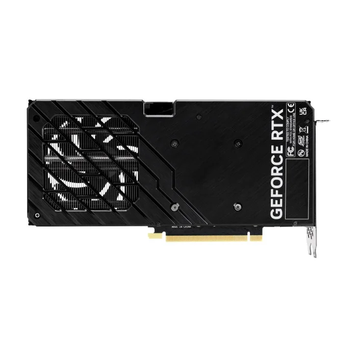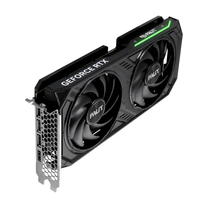 GeForce RTX 4060 Ti серії Dual має гладке чорне покриття. Завдяки двом великим 95-мм вентиляторам та отворам підвищеної площі на задній панелі відеокарти, відеокарта забезпечує конкурентоспроможні ефективність охолодження та акустичні характеристики. Тонка RGB-підсвічування на задній панелі також додає комп’ютеру візуальний стиль, не відволікаючи при цьому занадто багато уваги.
