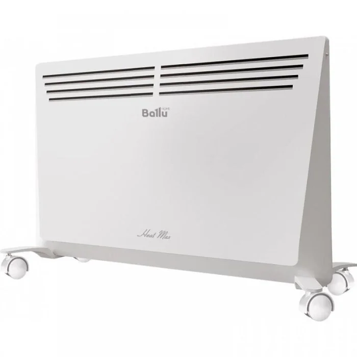 Конвектор електричний Ballu - серія HeatMax Mechanic (ХітМакс Механік). Модель сезону осінь-зима 2015 року. Розроблено компанією новий монолітний нагрівальний елемент з подвійною потужністю нагріву Double-G-Force. Висока ККД (більше 90%) дозволяє істотно економити електроенергію.Монолітная структура алюмінієвого нагрівального елементу забезпечує абсолютно безшумну роботу і відсутність тепловтрат. Прилад оснащений захистом від перегріву і перекидання. Бризкозахищене виконання IP24. У стандартній комплектації є коліщатка для підлогової установки. Також при необхідності конвектор можна встановити на стіну.