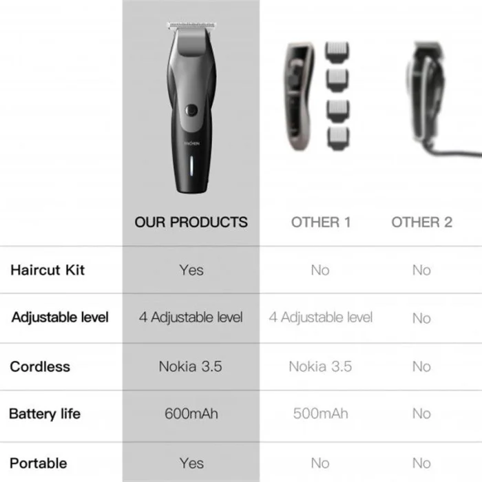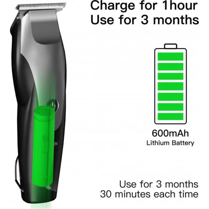 Аккумулятор на 1500 мА*ч Машинка для стрижки волосся ENCHEN оснащена акумулятором ємністю 1500 мА*г. Час зарядки складає 3 години. При повністю зарядженому акумуляторі, машинку можна використовувати безперервно протягом приблизно 4 годин або близько 240 днів з інтенсивністю 30 хвилин в місяць. Крім того, система зарядки, також, оснащена відповідними стандартами безпеки, світловий індикатор стану зарядки, стан живлення інтуїтивно, також, досить зрозуміло та легко відстежується.