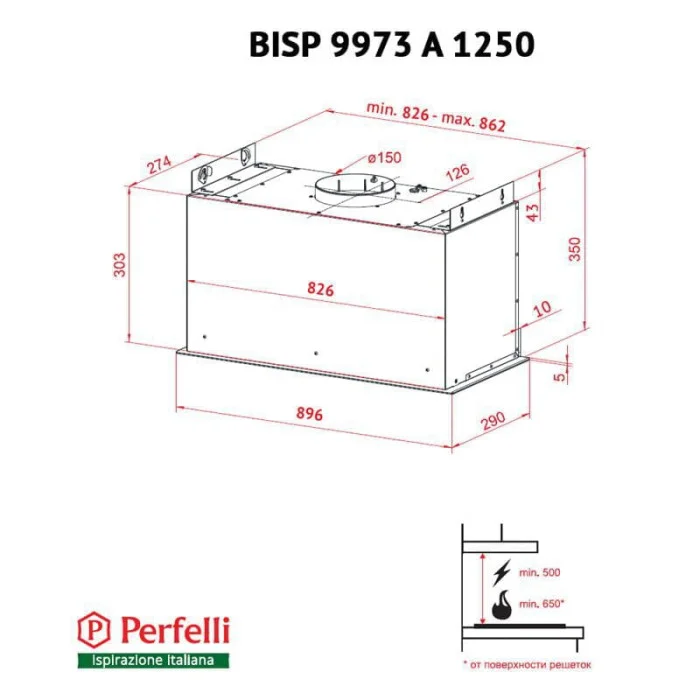 Технічні характеристики: Витяжка Perfelli BISP 9973 A 1250 BL LED Strip