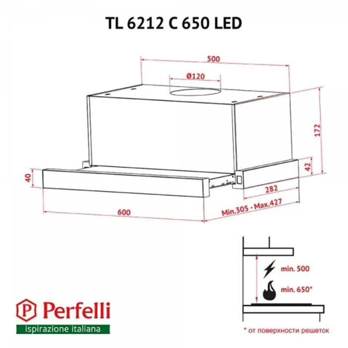 Стильна витяжка Perfelli - європейської якості відмінно впишеться в дизайн Вашої кухні. Конструктивні особливості витяжки ТМ Perfelli, дозволяють комфортно працювати з усією поверхнею плити.