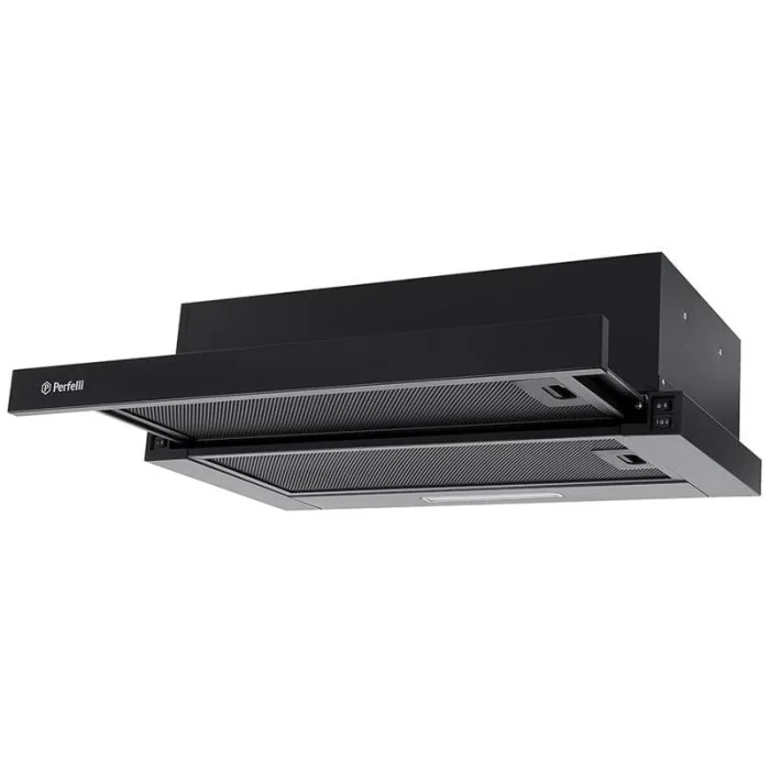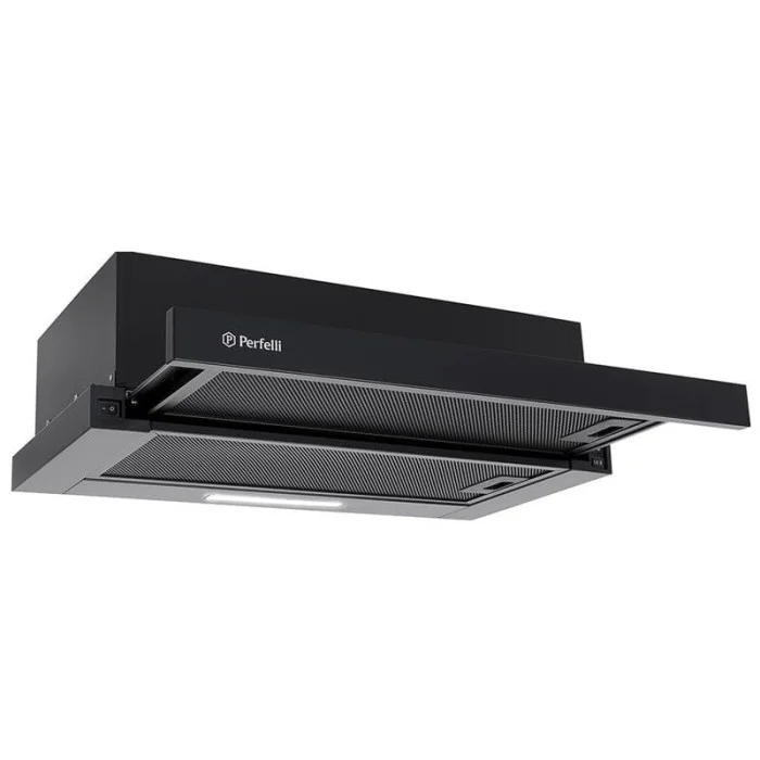 Основною перевагою телескопічного типу витяжок є її компактність, ергономічність і висока продуктивність. Perfelli TL 6316 700 LED стане надійною помічницею на вашій кухні в боротьбі з супутніми запахами в процесі приготування страв. Її продуктивність складає 700 м3 / год. Мотор потужністю 70 Вт і інші внутрішні деталі надійно захищає від забруднення алюмінієвий фільтр, який покликаний вловлювати частинки жиру і утримувати їх на своїй поверхні. При досить високій продуктивності витяжка Perfelli TL 6316 700 LED володіє невисоким рівнем шуму 60-63 Дб. Телескопічна витяжка Perfelli TL 6316 700 LED спроектована таким чином, що більша частина її конструкції ховається в навісний кухонну шафу. Видимою залишається тільки висувна панель, яка задіюється під час роботи і виглядає дуже стильно. Цей тип витяжки ідеально впишеться в сучасний інтер'єр. Ширина приладу складає 60 см - це універсальний розмір, який підходить для розміщення над варильною поверхнею приблизно такого ж розміру.
