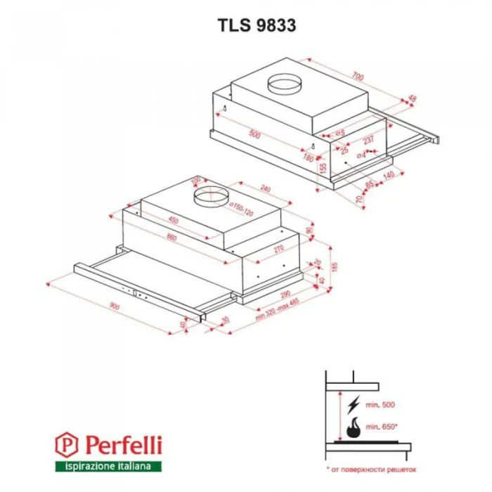 Технічні характеристики: Витяжка Perfelli TLS 9833 W LED Strip