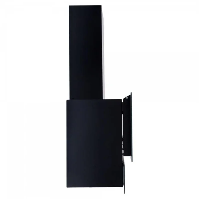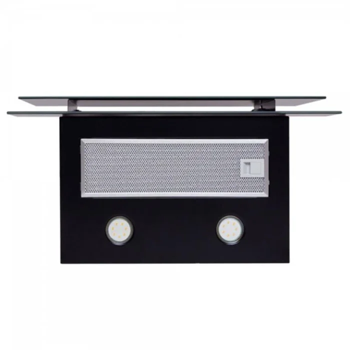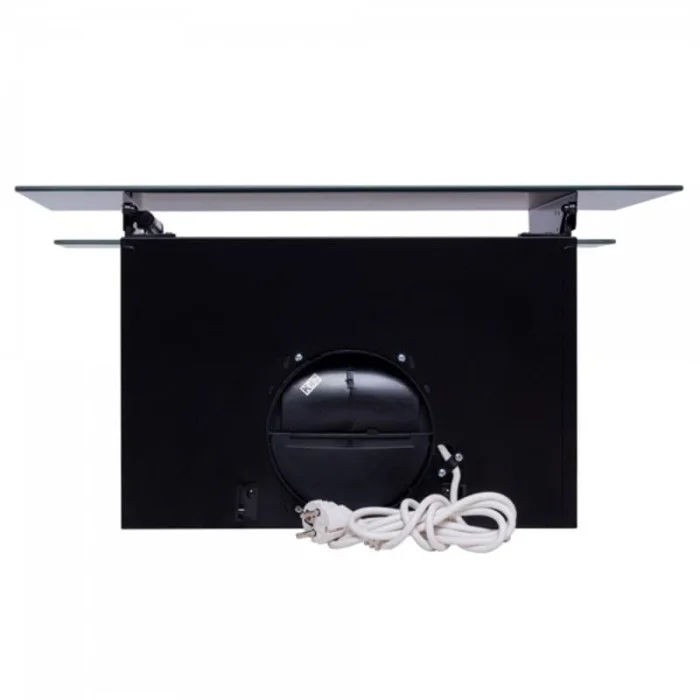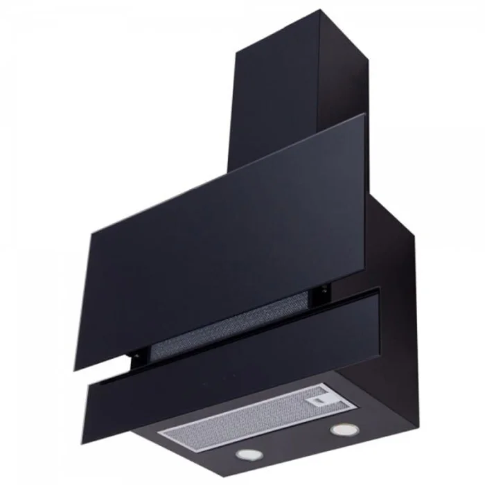 Декоративна пристінна витяжка, потужність: 1000 м3 / год. Ширина: 600 мм. Матеріал / Колір декору - чорне загартоване скло. Корпус - фарбований метал. Управління сенсорне. 3 швидкості. Таймер 30 хв. Освітлення: LED 2х3 Вт. Алюмінієвий фільтр. Режими роботи: Відвід / рециркуляція. Рівень шуму: хв. 53 - макс. 63 Дб.