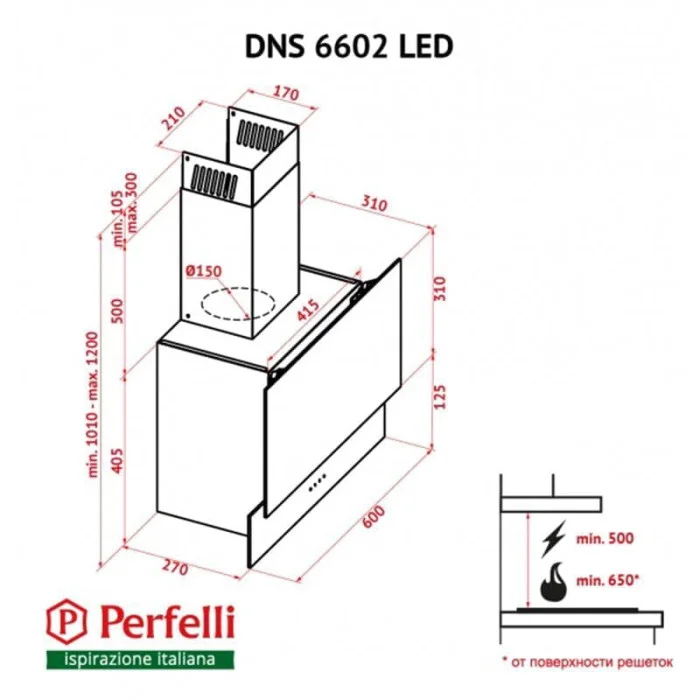 Технічні характеристики: Витяжка Perfelli DNS 6602 BL LED