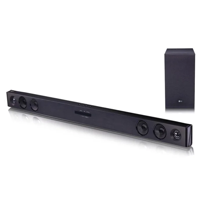 Беспроводной сабвуферРазместите сабвуфер в удобном для вас месте и наслаждайтесь отличными басами.Адаптивный контроль звукаАдаптивный контроль звука - собственная технология LG, улучшающая качество воспроизведения голоса. Анализируя уровень громкости голоса в режиме реального времени, технология ASC уменьшает мощность басов для придания кристальной четкости голосу (например, в диалогах/новостных программах).Технология Auto Sound EngineТехнология LG Auto Sound Engine оптимизирует баланс звуковых частот, что позволяет избежать искажений в качестве воспроизведения даже на максимальном уровне громкости.ДизайнСаундбар и ТВ идеально дополняют друг друга благодаря схожему дизайну.Режим ожидания BluetoothАвтоматический старт воспроизведения музыки через саундбар. Воспроизведение начнется даже если саундбар находится в спящем режиме, просто начните воспроизведение со смартфона по Bluetooth, и музыка зазвучит из динамиков саундбара.Управление с помощью пульта от ТВПоддерживаются пульты от ТВ производителей: LG, Sony, Philips, Sharp, Panasonic, Vizio, Toshiba и Samsung.