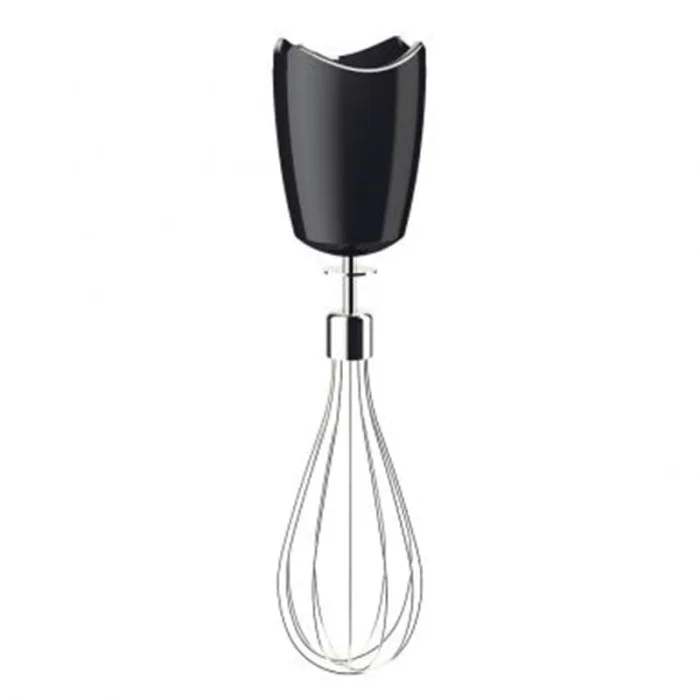 Максимальные возможности Традиционно считается, что ручные блендеры являются только вспомогательными кулинарными приборами, но купив погружной блендер Braun MQ 5237 BK, вы убедитесь, что лучшие модели способны на равных конкурировать даже с лучшей универсальной техникой для кухни. Встроенный в корпус мотор с предельной мощностью до 1000 Ватт может работать на 21 скорости. Также имеется режим «турбо» для кратковременного применения. Настраивайте прибор так, чтобы эффективно смешивать и взбивать ингредиенты, независимо от их консистенции. Густые и легкие «воздушные» смеси, компоненты для салатов, муссы. Готовьте практически без ограничений! Сменные насадки Помимо стандартных нержавеющих ножей, установленных на блендерной ножке, в комплект поставки входят два дополнительных аксессуара. Насадка-измельчитель представляет собой пластиковую емкость 500 мл. (Type: СA), в которой удобно измельчать овощи (и не только их). Т.к. измельчитель полностью закрыт, даже на высокой скорости все содержимое останется внутри и не разлетится по кухне. Вторая насадка – венчик для взбивания и перемешивания. С его помощью особенно хорошо получится взбивать кремы. Мерный стаканчик на 600 мл. (со шкалами), будет полезным дополнением, которому найдется применение на любой кухне. Фирменные технологии Одно из безусловных достоинств погружной блендер Braun MQ 5237 BK заключается в простоте работы с ним. Насадки подключаются к моторному блоку через систему EasyClick (Type: 4191). Просто слегка прижмите до щелчка. По завершении готовки, насадка отсоединяется без проблем, но пока мотор работает (на любой скорости), нет никакого риска, что она случайно отсоединится. Кроме того, сама блендерная нога выполнена по запатентованным технологиям. PowerBell создает втягивающий эффект, за счет чего лезвия ножей работают более эффективно, а значит, обрабатывают продукты быстрее. Технология SplashControl уменьшает разлет брызг из-под ножей.