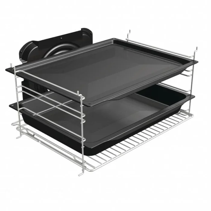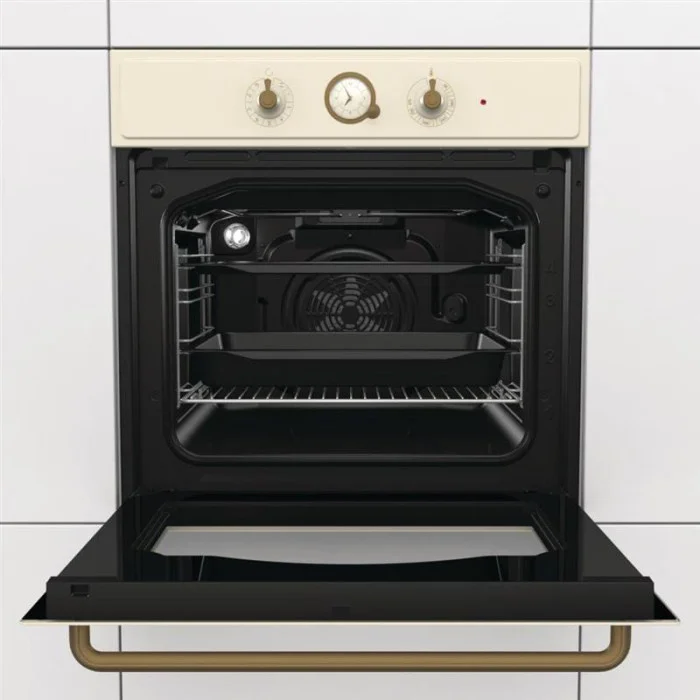 Сводчатая форма HomeMade Plus Идеальная духовка для профессиональных результатов Духовка стала еще просторнее, а потолок более сводчатым, повторяя конструкцию традиционной дровяной печи. Воздух свободно циркулирует, обволакивает продукт со всех сторон, делая его нежным и сочным внутри и невероятно хрустящим снаружи. В камере объемом 71 литр с утопленными боковыми стенками воздух распределяется еще лучше, поэтому по всему пространству духовки поддерживается одинаковая температура, что обеспечивает равномерное пропекание. Принудительная циркуляции воздуха создает профессиональные условия для приготовления как на одном, так и на нескольких уровнях одновременно. AquaClean: очистка паром Простая повседневная очистка Благодаря использованию совершенно новой пиролитической эмали во всех линиях нового поколения духовок Gorenje эффективность функции AquaClean намного улучшена. Функция AquaClean — это ощутимая помощь в очистке рабочей камеры. PerfectGrill Хрустящая корочка с вариогрилем Превосходные результаты приготовления в духовых шкафах Gorenje достигаются за счет продуманного расположения верхних нагревательных элементов: большой нагреватель расположен по периметру потолка, малый инфранагреватель — ближе к центру. Благодаря этому тепло распределяется равномерно, и блюдо запекается до хрустящей корочки и остается сочным внутри.