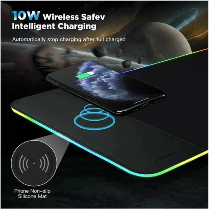 Коврик для мыши с беспроводной зарядкой 2 в 1 Коврик для мыши и функция беспроводной зарядки QI благодаря превосходному дизайну комбинации 2 в 1 - объединяет удобство беспроводной зарядки с производительным ковриком для мыши с микротекстурой, больше не загромождает кабель в зоне зарядки, предлагает много места для игр или офисной работы и помогает улучшить игровой опыт для геймеров или эффективность работы в офисе.