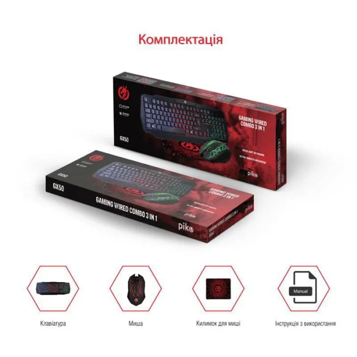 Комплект (клавиатура, мышь) Piko GX50 Black USB (1283126506208) + коврик