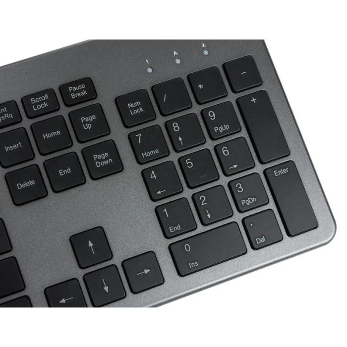 Vinga KB735 black-grey – надежная клавиатура в черно-сером корпусе, выполненном из прочного пластика. Экономическая стоимость в этом продукте совмещается с практичностью, износостойкостью и прочностью. Идеальный вариант для офисов и домашних рабочих компьютеров. В конструкции предусмотрено 104 клавиши, в том числе кнопки калькуляции Numpad и функциональные инструменты F1 – F12. При этом устройство является достаточно компактным и весит всего лишь 0.545 кг. Модель подключается к персональному компьютеру с помощью встроенного кабеля USB, длина которого составляет 180 см. Производитель предусмотрел для пользователей возможность печатать на KB735 black-grey в трех раскладках: и русского. Тип механизма взаимодействия с контактами платы - мембранный. Под кнопками расположен эластичный материал, обеспечивающий реакцию устройства на нажатие. Вместе с тем он служит дополнительным барьером для жидкости, ведь если вы случайно прольете на прибор чуть-чуть воды, то она задержится на мембране. Но не стоит экспериментировать, поскольку данная клавиатура все-таки не относится к категории водонепроницаемых. Модель отлично подходит для стационарных ПК, ноутбуков и других устройств, совместимых с USB интерфейсом.