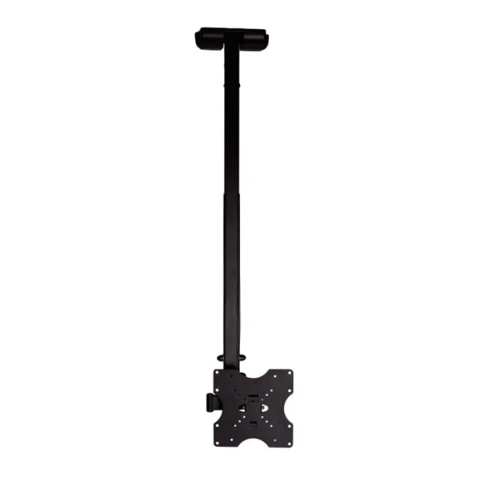 Кронштейн КВАДО K-81 black - стельовий кронштейн. Призначений для встановлення невеликих та середніх телевізорів. Оснащений похилим та поворотним механізмами. Довжина штанги регулюється. Кріплення на стелі ховається за декоративною кришкою. Знімна панель кріплення для легкої установки.